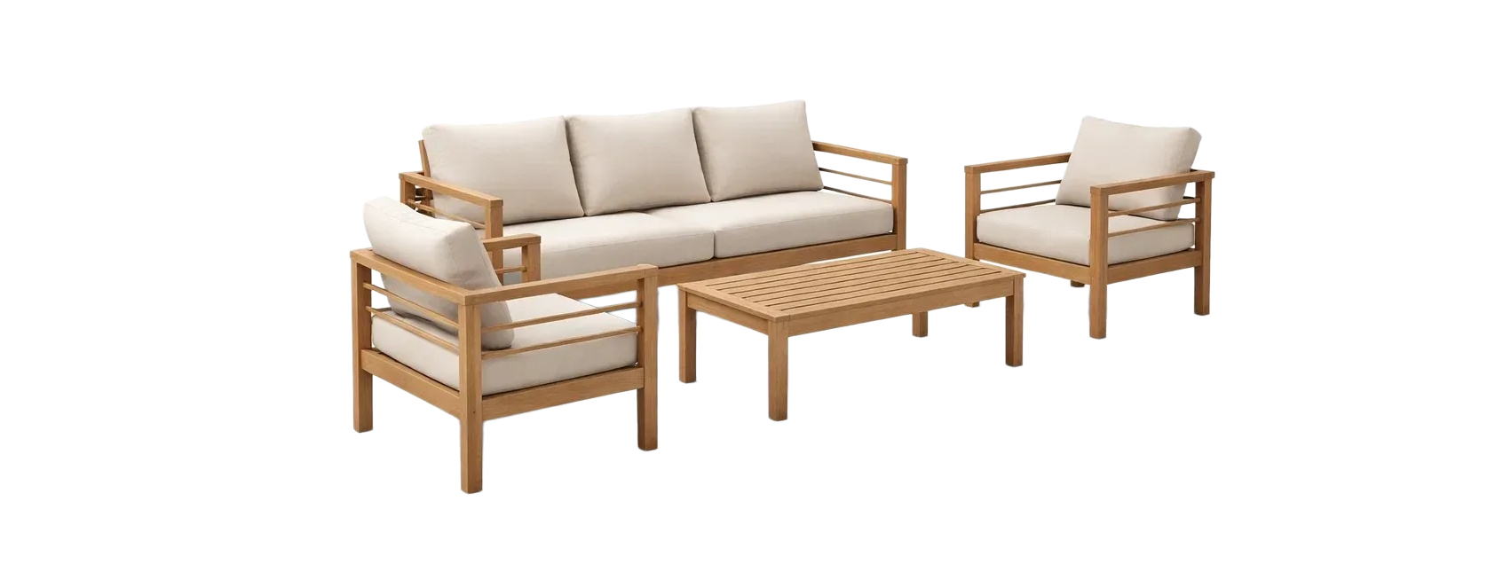 Set da relax piccolo in metallo e teak beige con sedie e tavolino