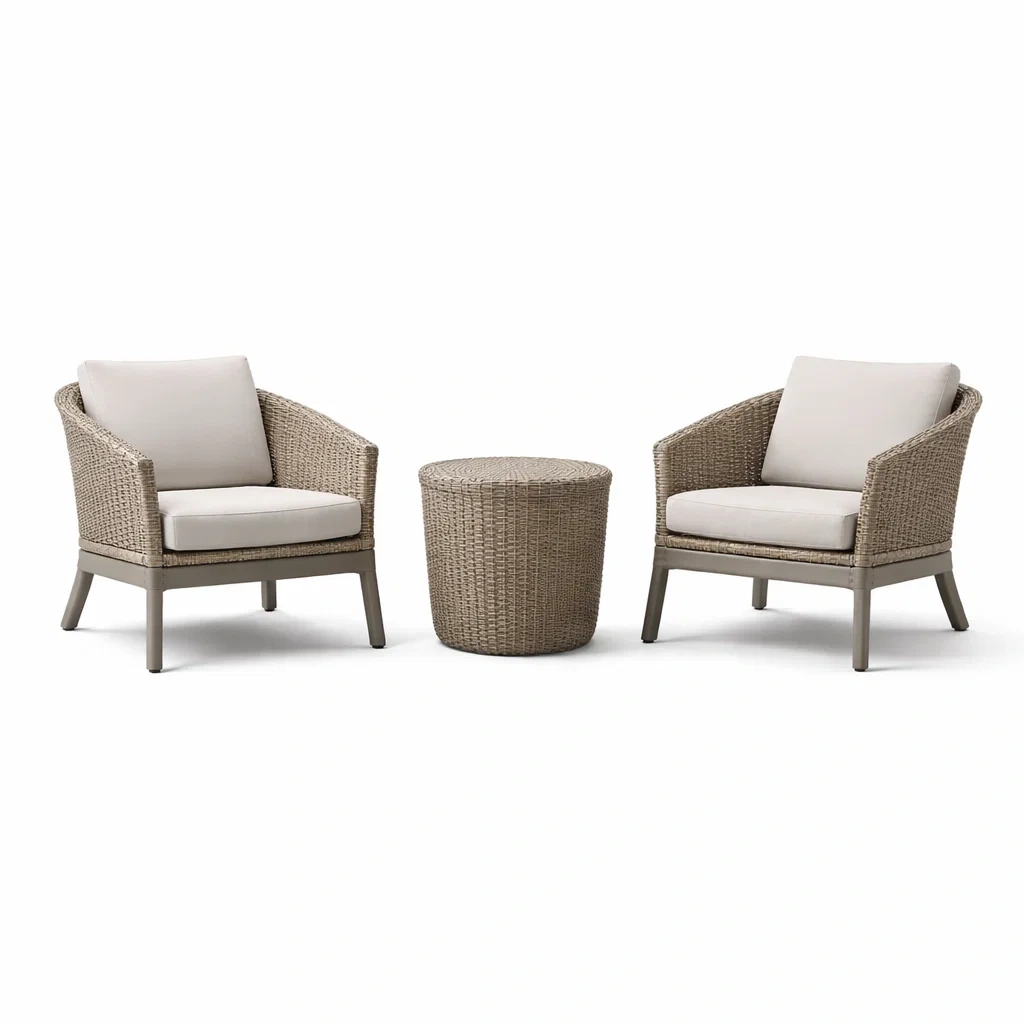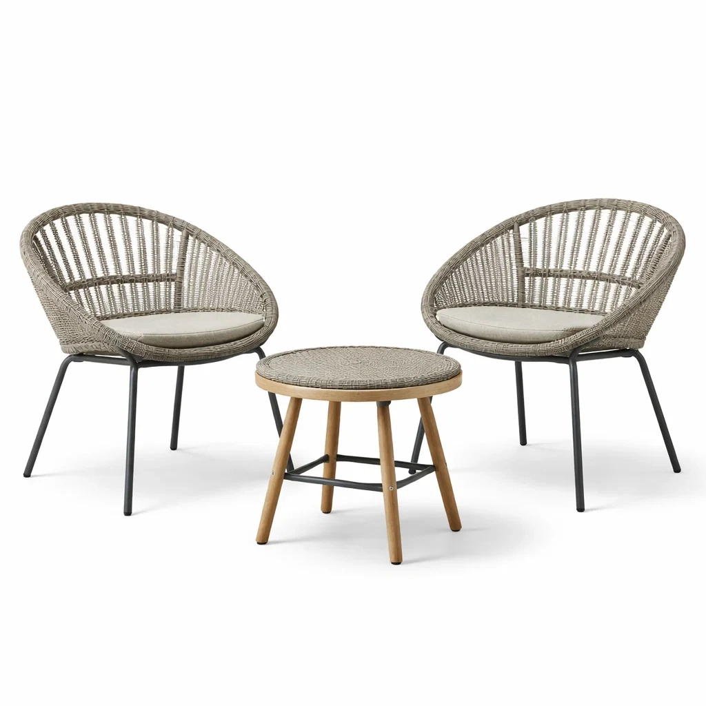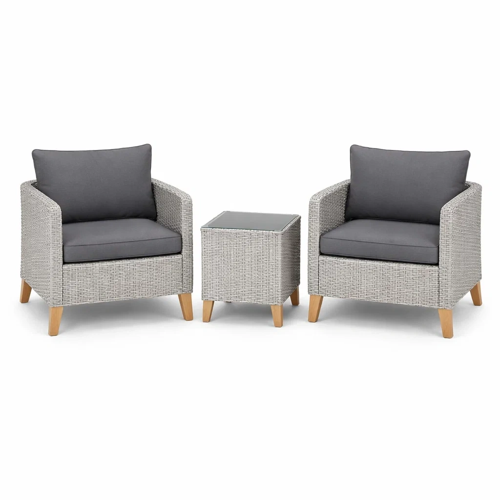 Set da relax piccolo in rattan sintetico con 2 sedie e tavolo
