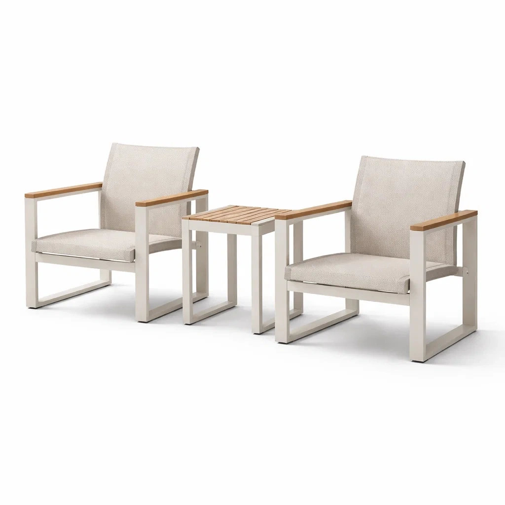 Set da relax piccolo in metallo e teak beige con sedie e tavolino