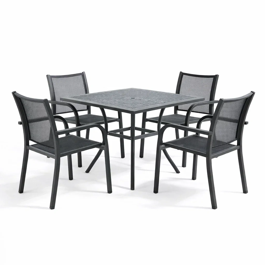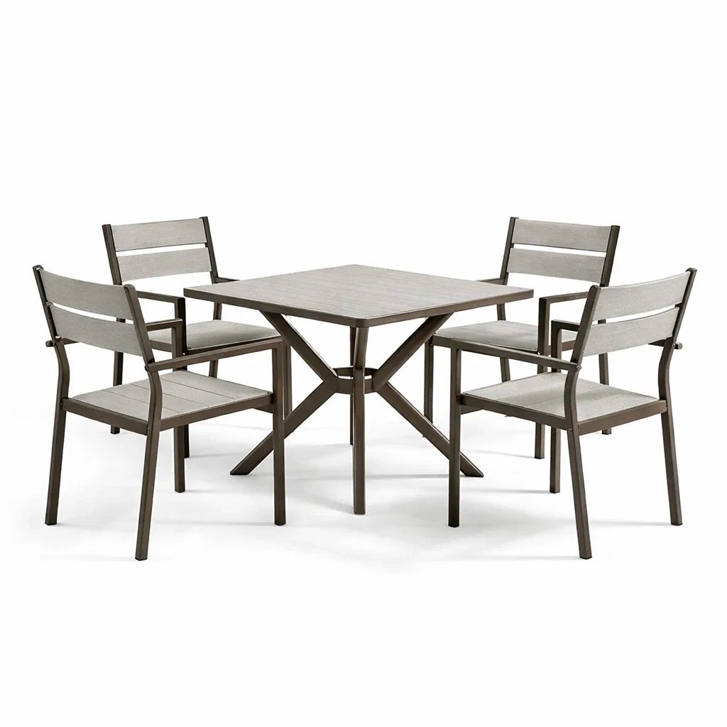 Set tavolo e sedie quadrato in alluminio e legno composito