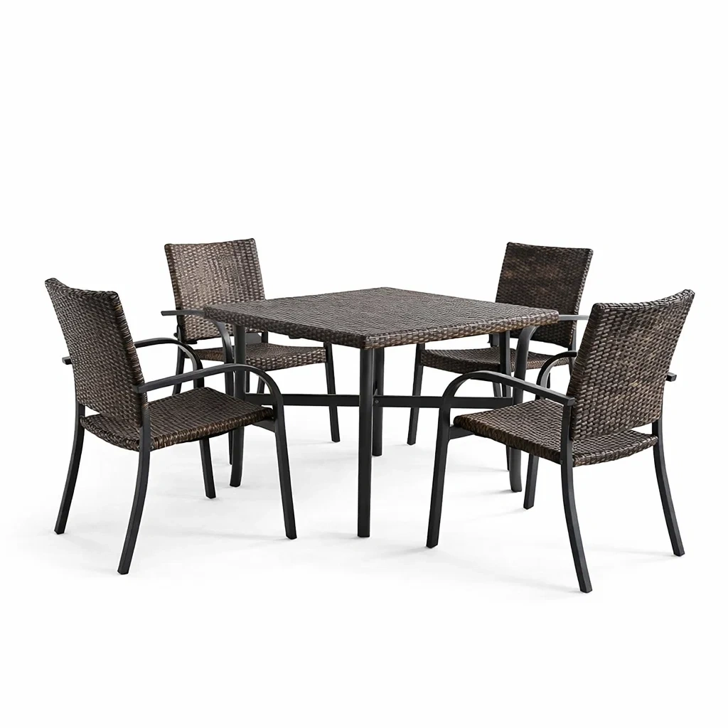 Set tavolo e sedie da giardino in rattan sintetico marrone