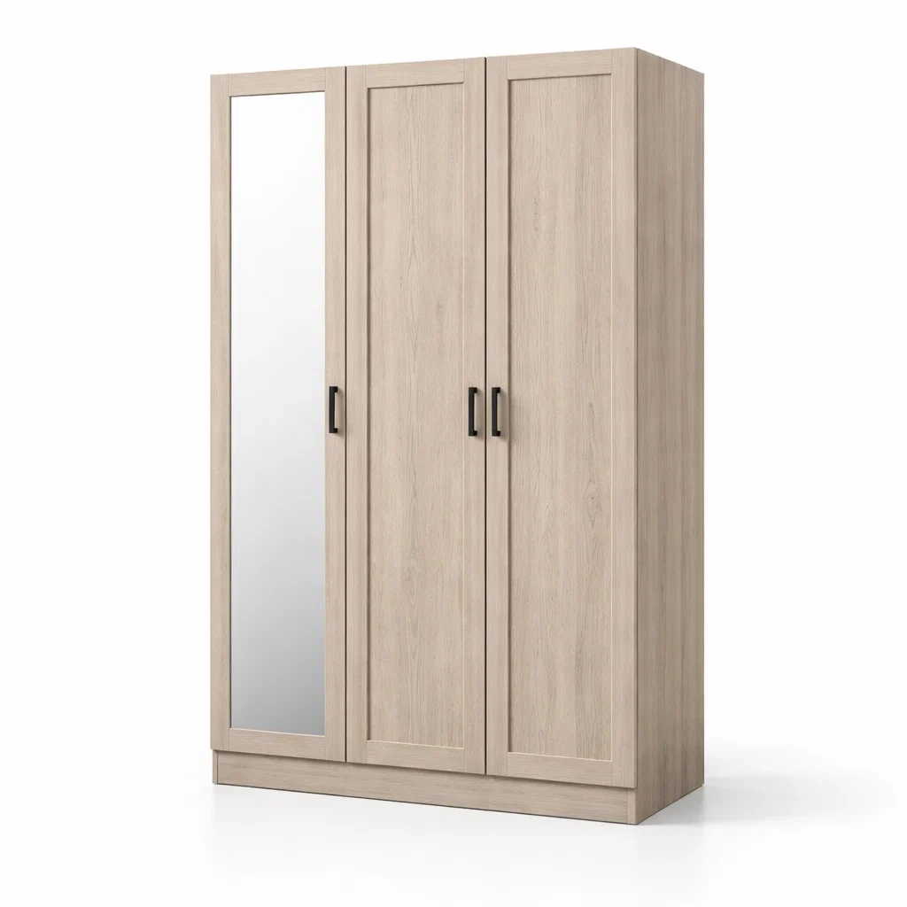 Armadio a tre ante con specchio integrato.