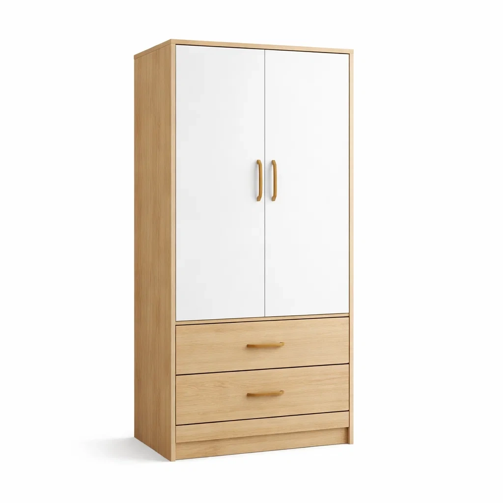 Materiale principale: MDF con finitura laminato effetto legno e bianco.