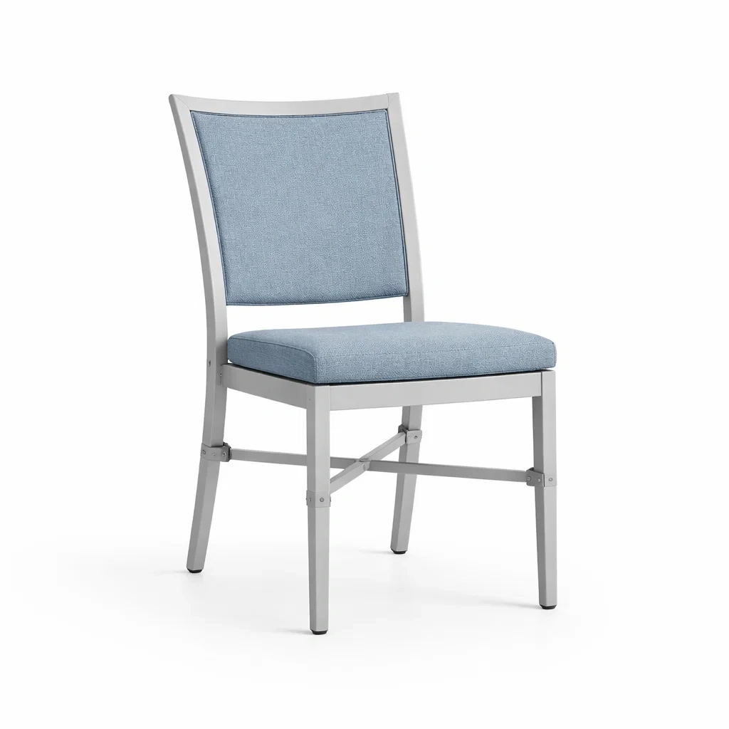 Materiali: Struttura in acciaio inossidabile. Seduta e schienale in tessuto di poliestere.