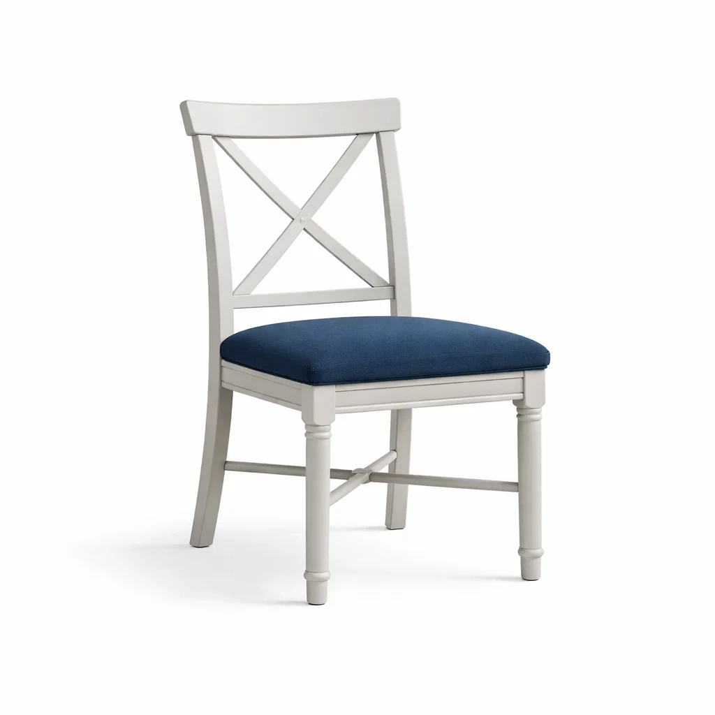 Sedia da pranzo in legno con seduta in cotone blu