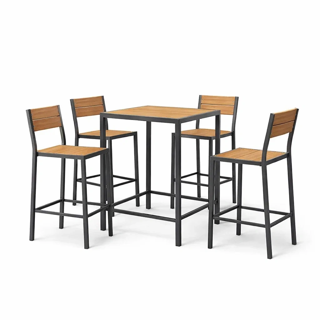 Set bar in legno di acacia e acciaio verniciato con tavolo e 4 sedie