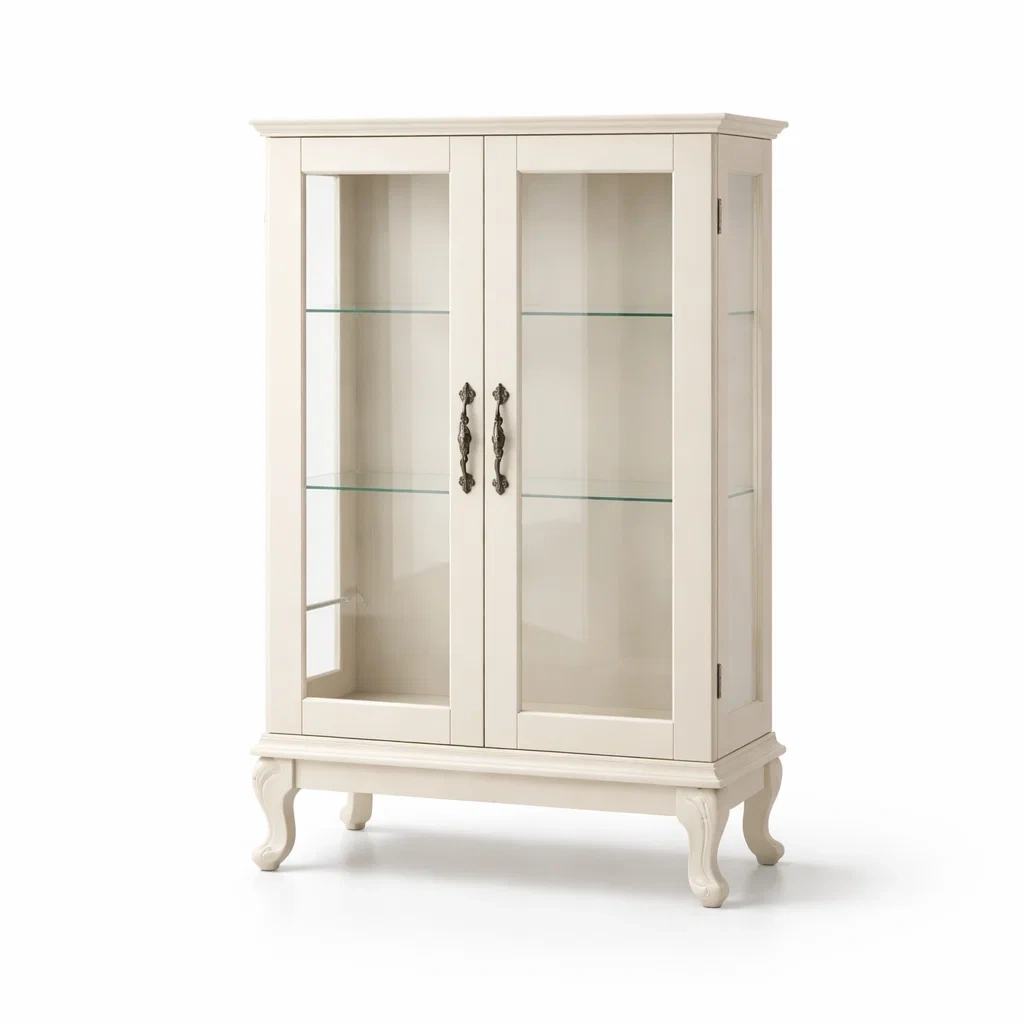 Vetrina in legno massello bianco con porte in vetro temperato
